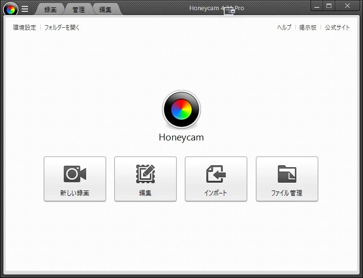 出来ることは、「Gif画像」の作成のための「録画」、「管理」、「編集」のみとシンプルです。