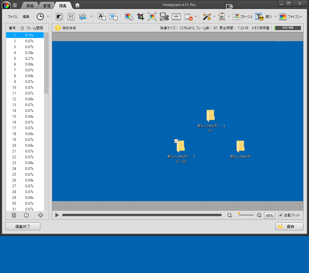 フリーソフトよりも「インポート時間・エクスポート時間」が短いという点も作業効率に影響するので、そういう意味でも私は「Honeycam」を愛用してます。
