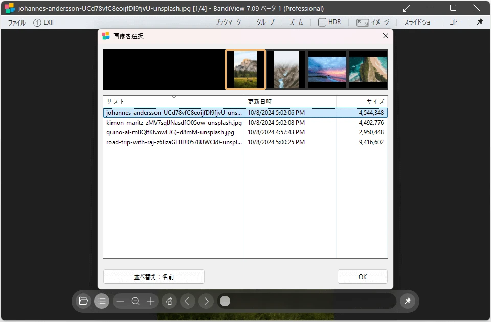 一つ下で紹介している「allrename」よりも優れている点として、リネーム前にフォルダ内の「画像」や「動画」の内容を見ながら任意の順番で並べ替えが出来ます(ソフト内でのみ)。